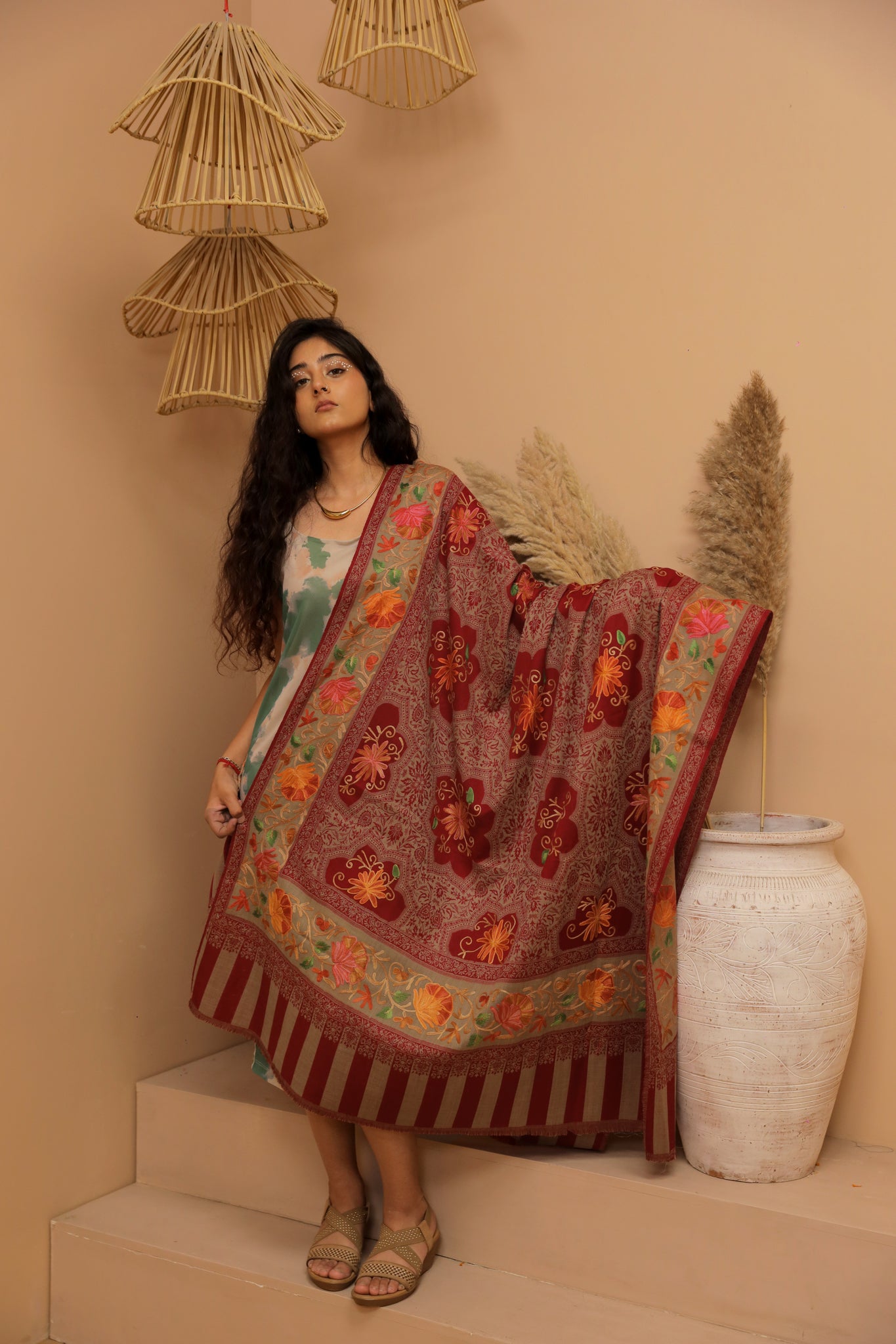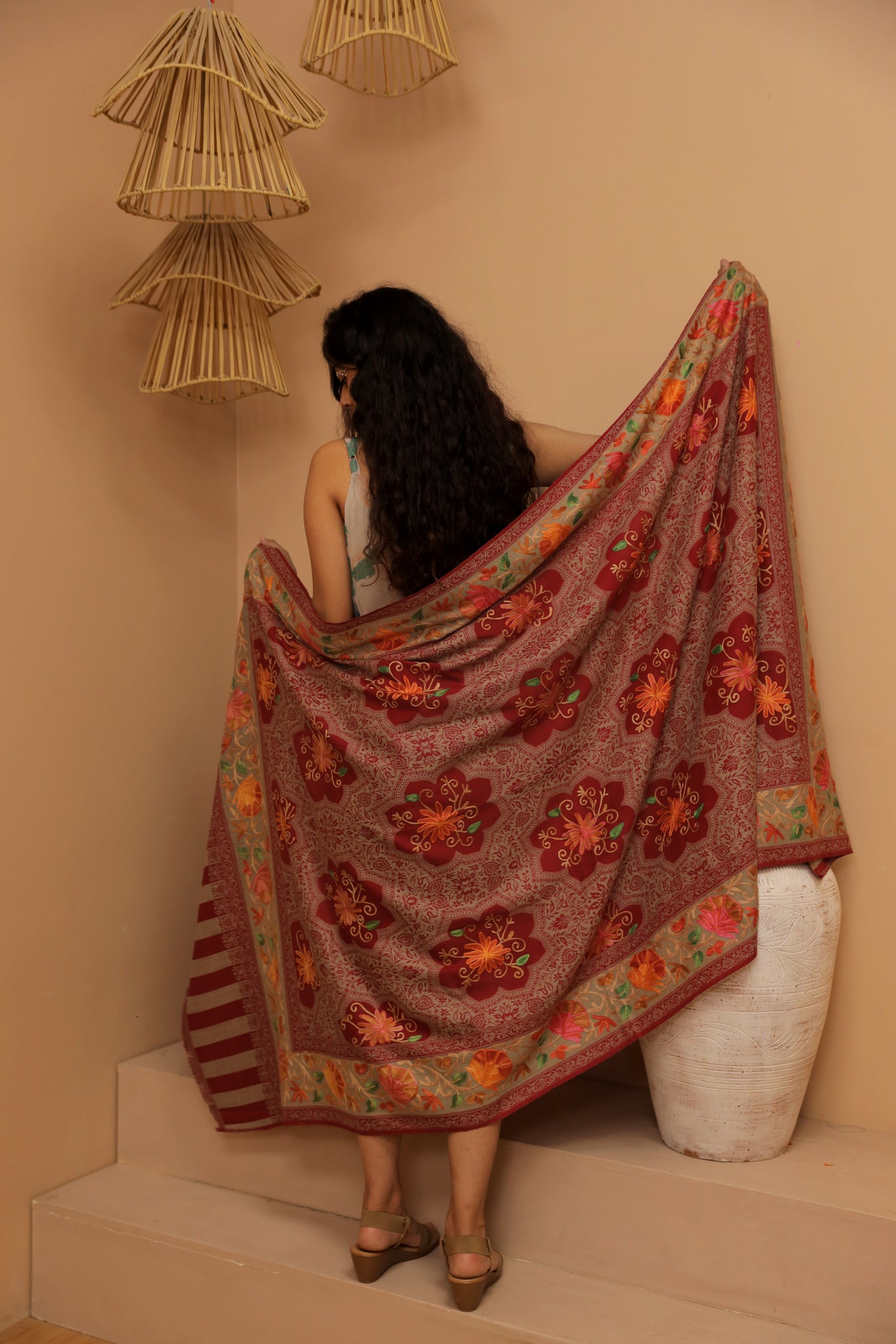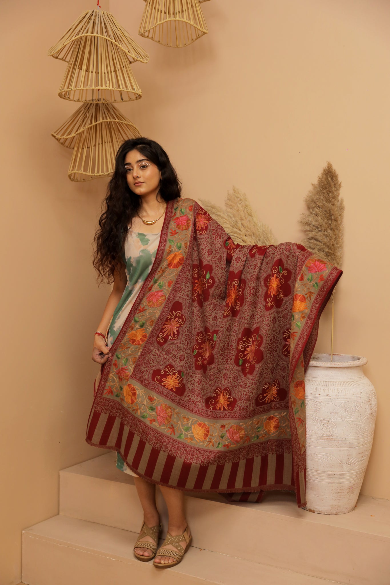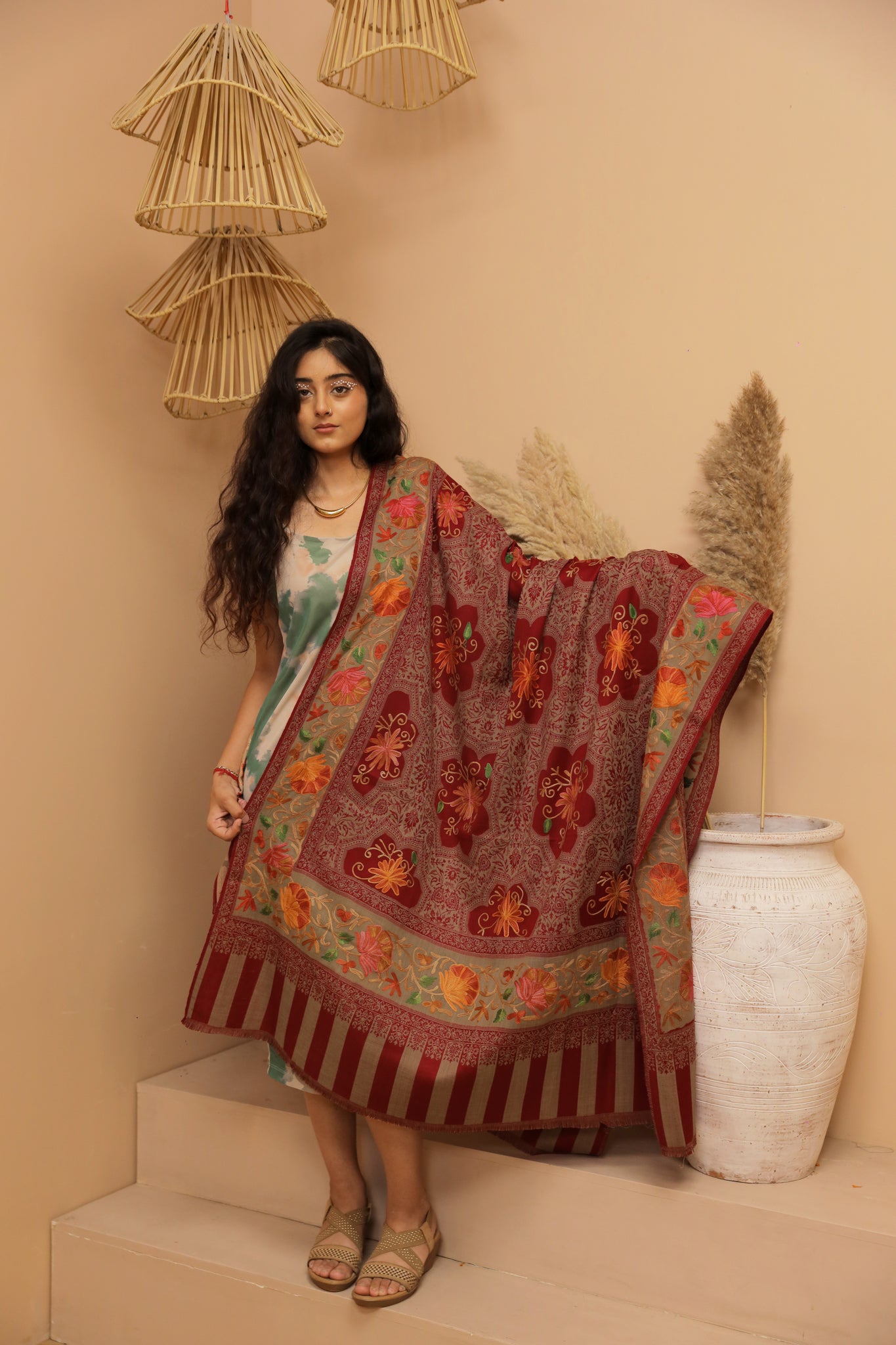 Crimson mirage Pashmina Shawl