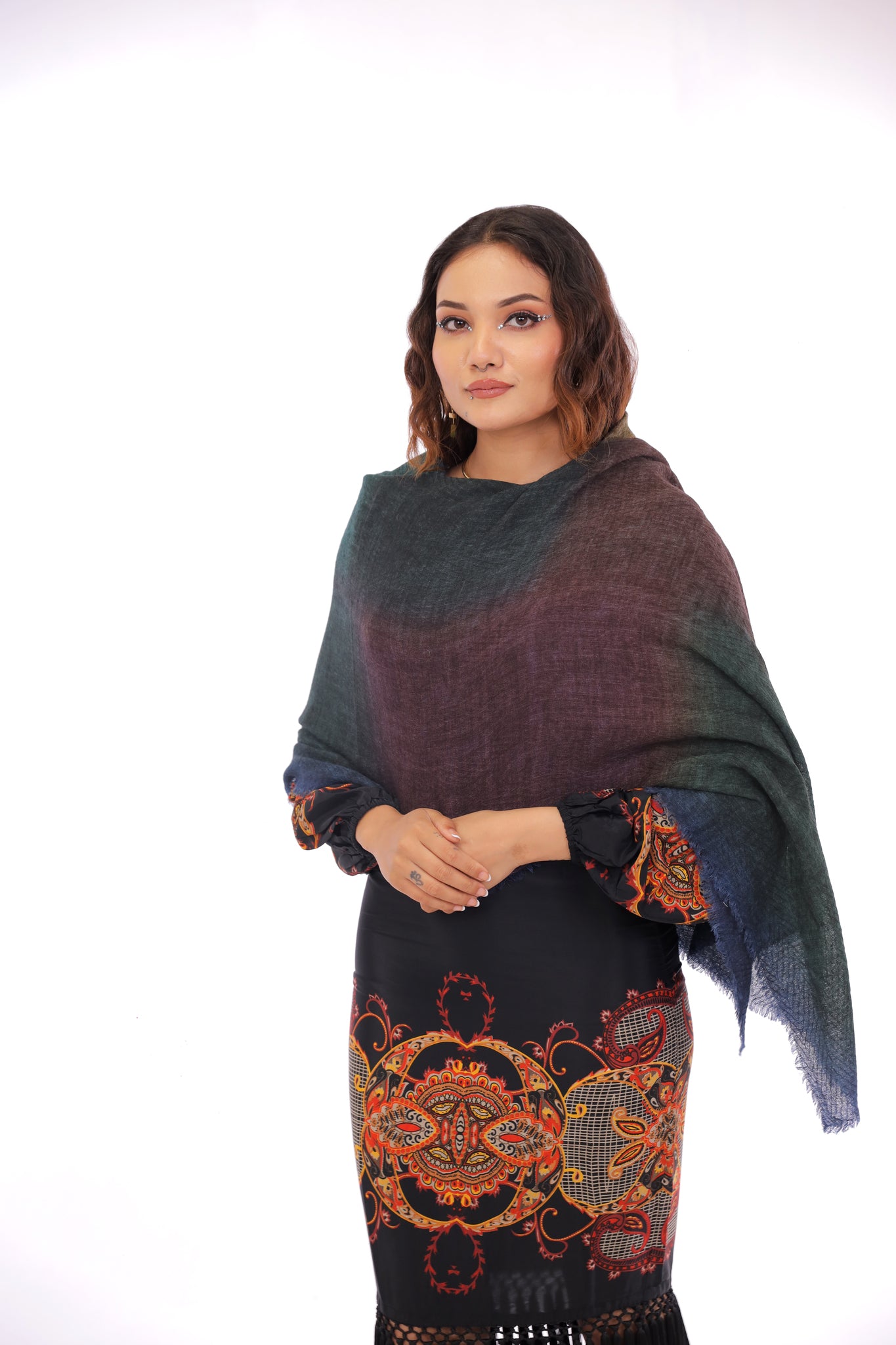 A poetic gradient of twilight tones in feather-light pashmina—Twilight Haze wraps you in warmth, softness, and quiet elegance.