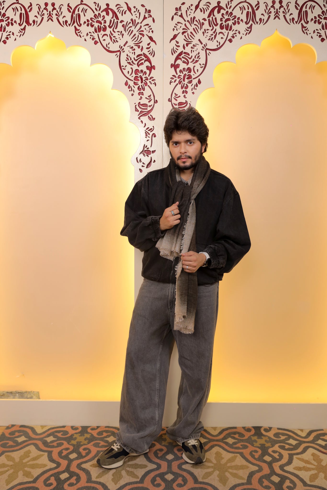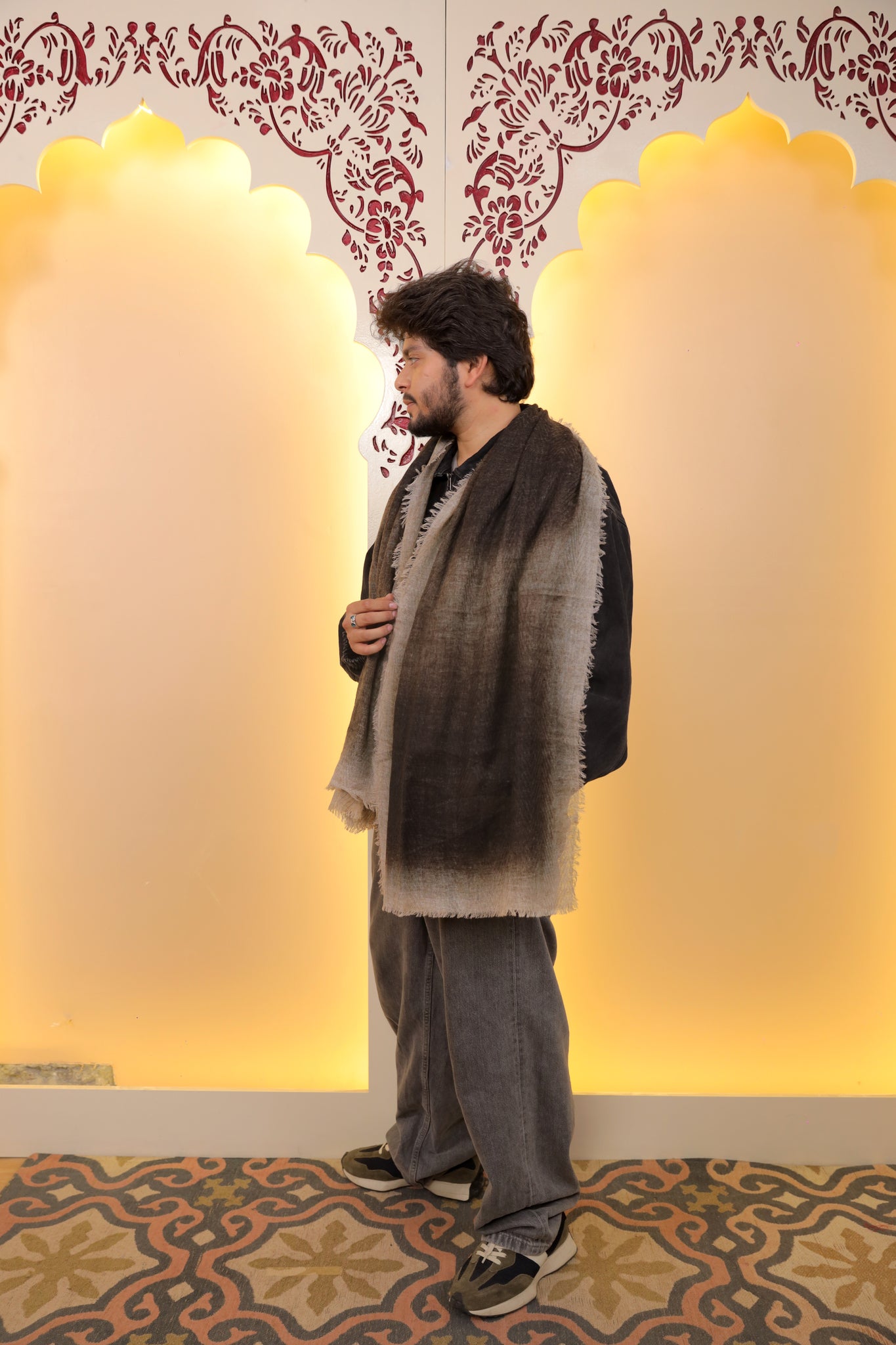 A soft medley of earthy browns and ivory, this feather-light pashmina scarf blends quiet elegance with everyday comfort.