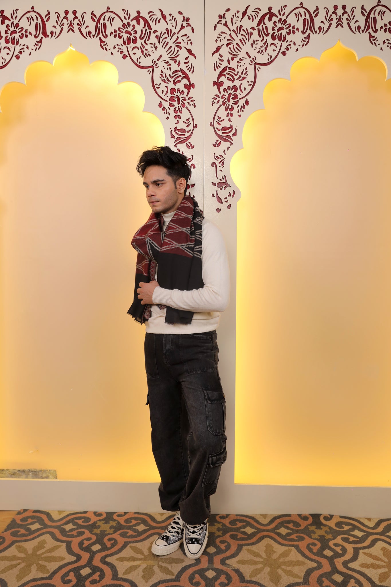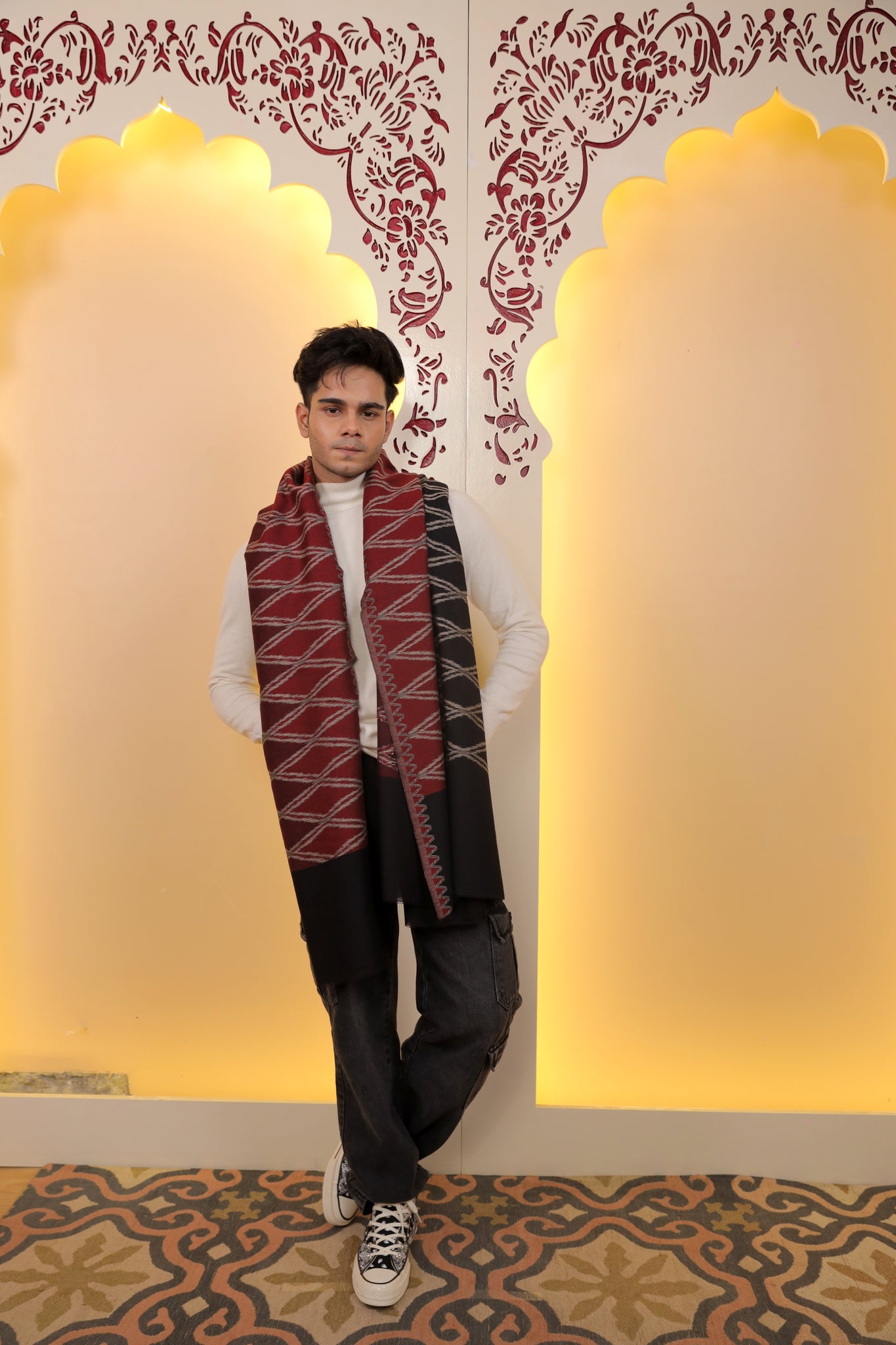 A striking fusion of deep crimson, black, and ivory—Crimson Weave is tradition reimagined with bold elegance.