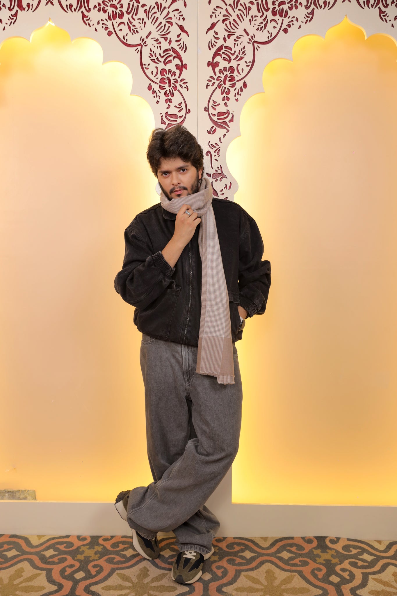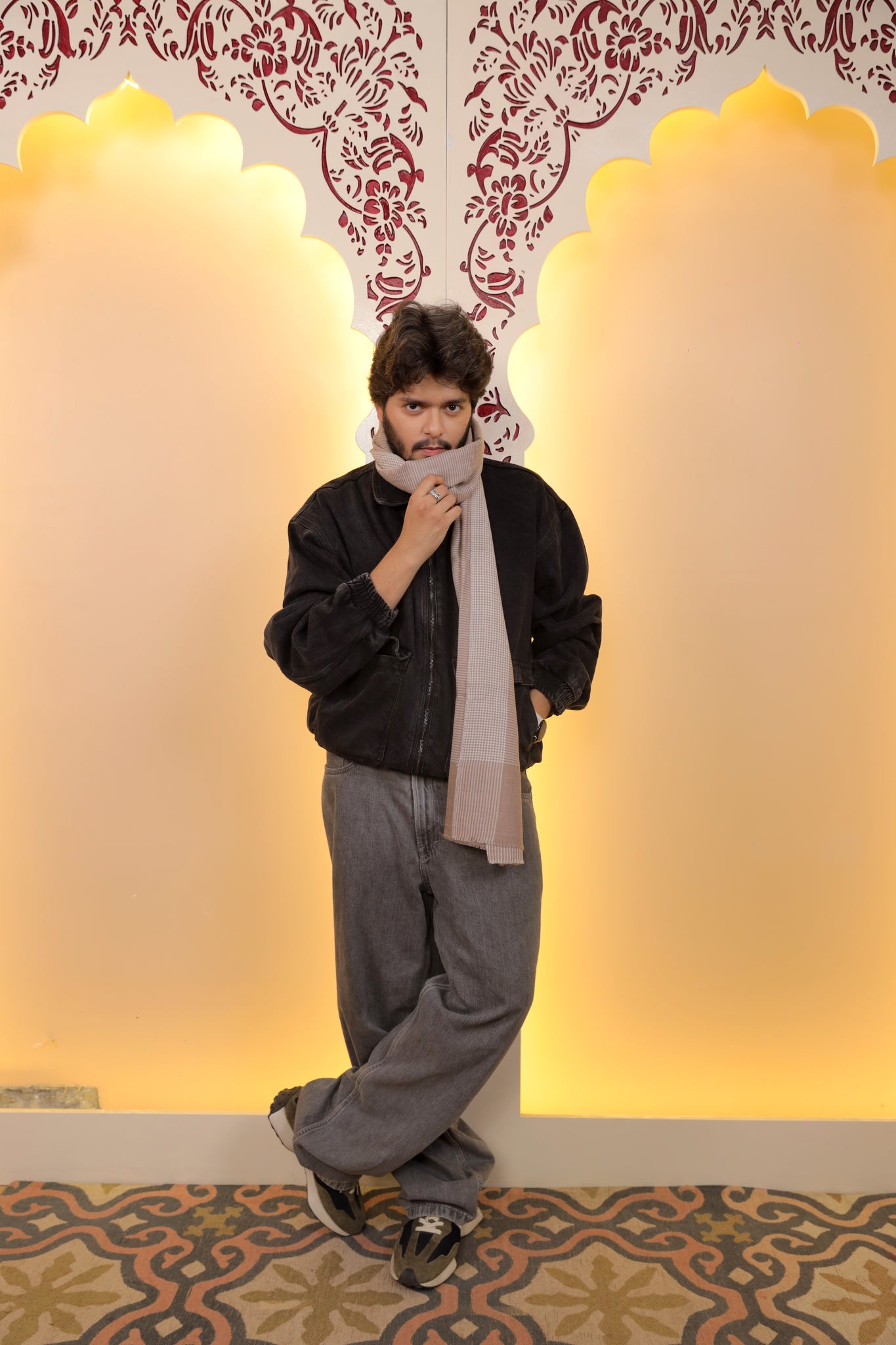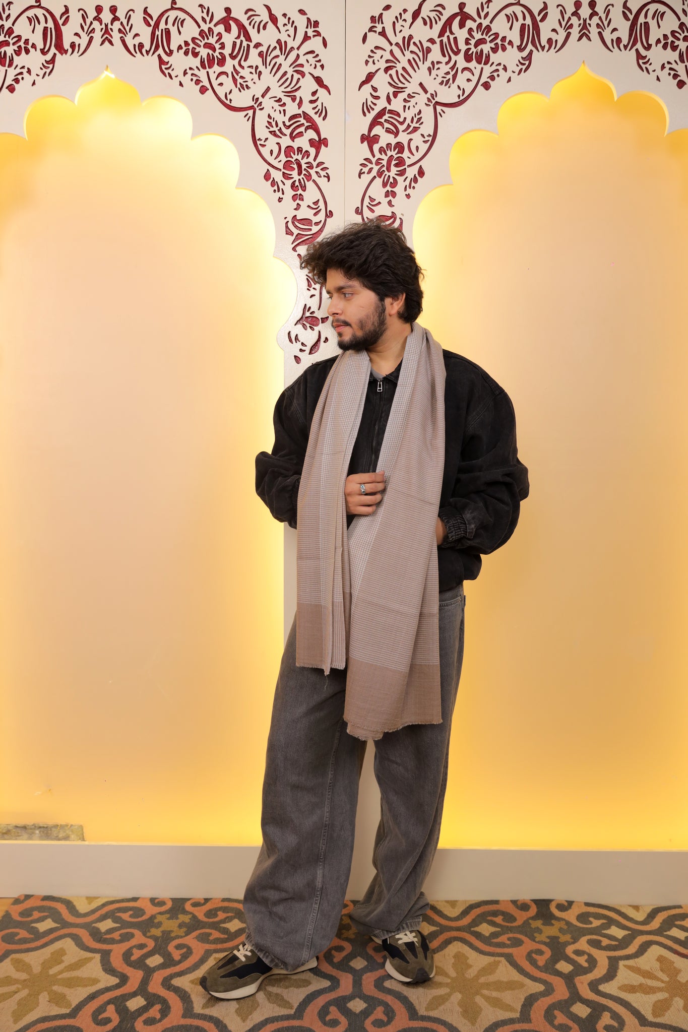 Whisper-soft and wind-swept in design, this beige pashmina scarf channels desert elegance through delicate textures and artisanal weaves.